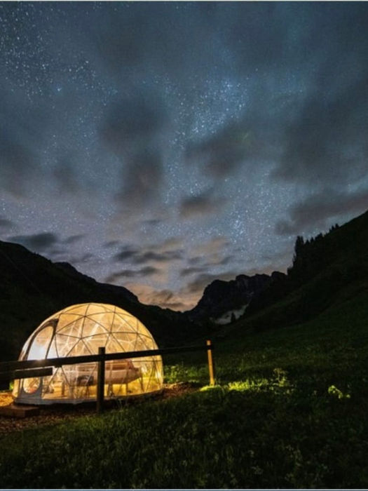 • Wind- und wassersicheres Bubble-Tent (Durchmesser 3.6 m) mit Tür und zwei Fenstern