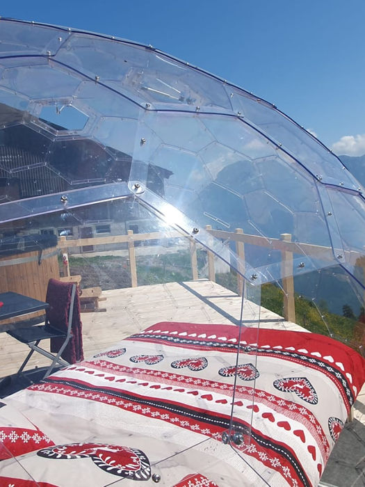 Wind- und wassersicheres Glasiglu (3.6 Meter Durchmesser) mit Tür und 3 Fenstern aus Plexiglas